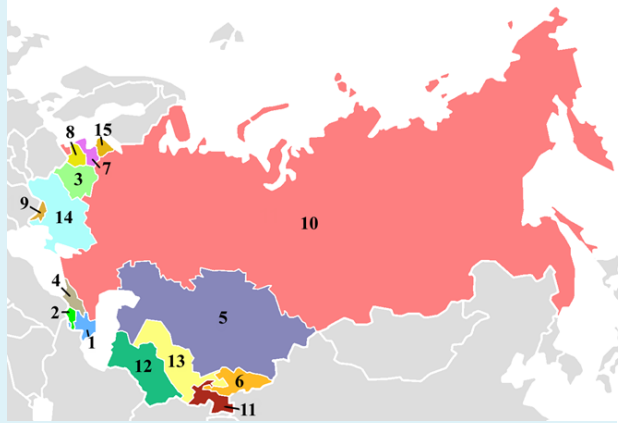 Обозначьте республики, входившие в состав СССР, и ставшие независимыми после его распада. Для этого выберите верный ответ из выпадающего списка.