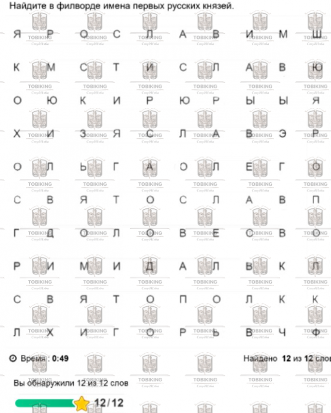 Изучите раздел 2. Древняя Русь, тема 2.2. Образование и развитие Древнерусского государства в VIII – XII веках, и найдите в филворде имена первых русских князей..