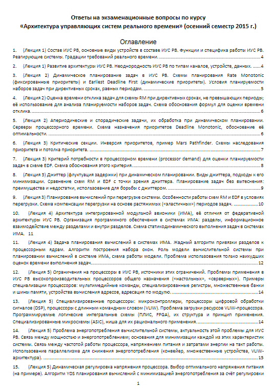 Для студентов МГУ им. Ломоносова по предмету (ИУС РВ) Архитектура управляющих систем реального времени2015 Ответы на экзаменационные вопросы2015 Ответы на экзаменационные вопросы