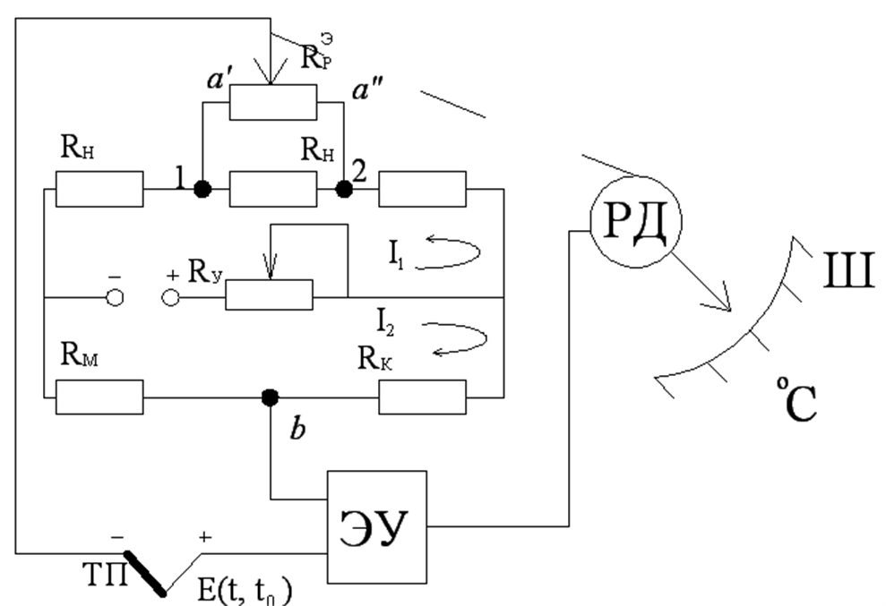 RМ – медного резистора (служит для компенсации температуры холодных спаев);
