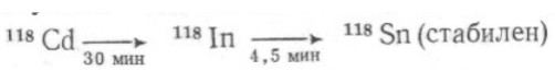 Радионуклид 118Cd испытывает превращения по цепочке: