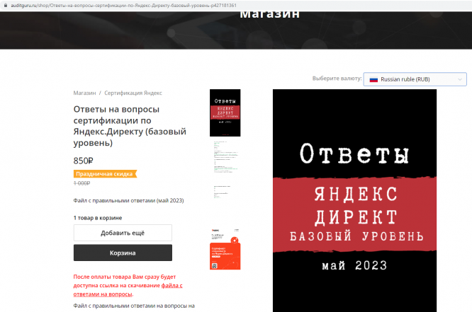 Все. Пока я планировал покупать ответы на этом сайте, вроде сайт нормальный и внушает доверие: https://auditguru.ru/shop/%D0%9E%D1%82%D0%B2%D0%B5%D1%82%D1%8B-%D0%BD%D0%B0-%D0%B2%D0%BE%D0%BF%D1%80%D0%BE%D1%81%D1%8B-%D1%81%D0%B5%D1%80%D1%82%D0%B8%D1%84%D0%B8%D0%BA%D0%B0%D1%86%D0%B8%D0%B8-%D0%BF%D0%BE-%D0%AF%D0%BD%D0%B4%D0%B5%D0%BA%D1%81-%D0%94%D0%B8%D1%80%D0%B5%D0%BA%D1%82%D1%83-%D0%B1%D0%B0%D0%B7%D0%BE%D0%B2%D1%8B%D0%B9-%D1%83%D1%80%D0%BE%D0%B2%D0%B5%D0%BD%D1%8C-p427181361 Отвечу в течение дня, как только увижу уведомление на телефоне. Вопросы из теста: Вопросы теста (базовый уровень) Ниже я собираю все доступные на май 2023 вопросы теста по Яндекс Директу базового уровня.