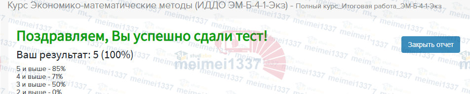 Для студентов ИДДО НИУ «МЭИ» по предмету Экономико-математические методыПолный курс Итоговая работа - 100%Полный курс Итоговая работа - 100%