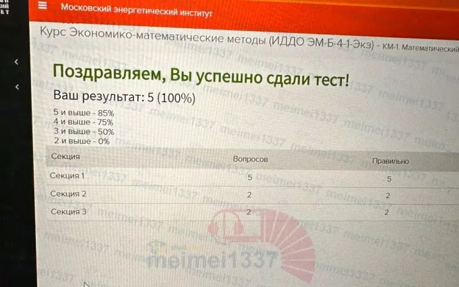 Для студентов ИДДО НИУ «МЭИ» по предмету Экономико-математические методыКурс Экономико-математические методы - КМ-1. Математический аппарат для анализа экономических задач. ТестированиеКурс Экономико-математические методы - КМ-1. Математический аппарат для анализа экономических задач. Тестирование
