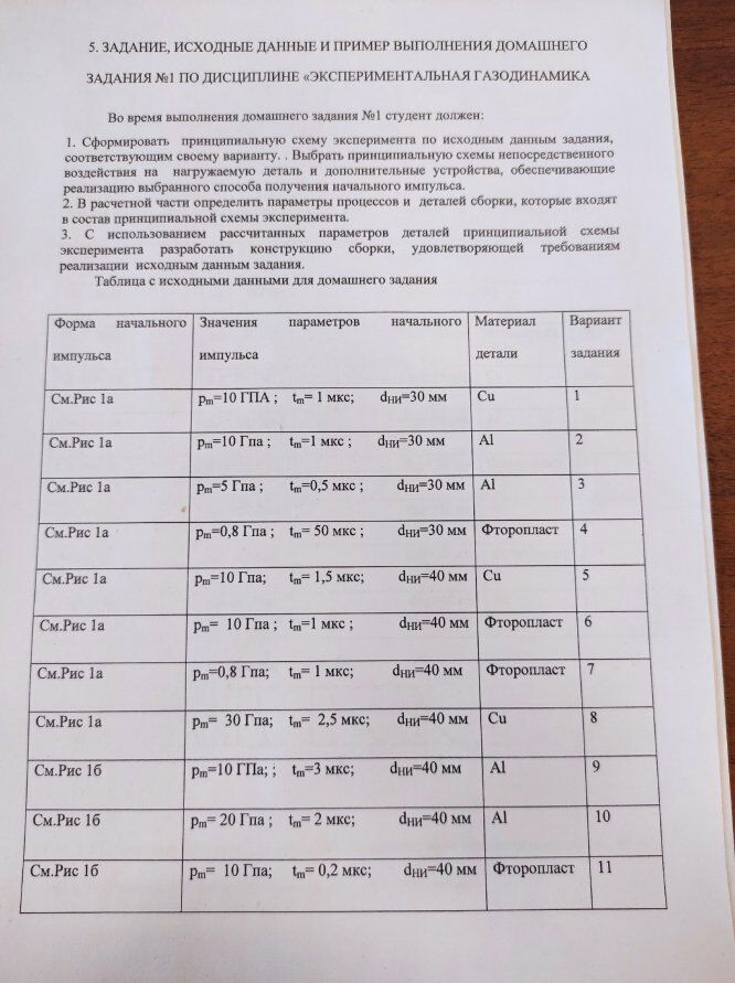 Для студентов МГТУ им. Н.Э.Баумана по предмету Экспериментальная газодинамикаРазработка эскиза устройства нагружения, генерирующего требуемый ударноволновой начальный импульс на поверхности детали из заданного материалаРазработка эскиза устройства нагружения, генерирующего требуемый ударноволновой начальный импульс на поверхности детали из заданного материала