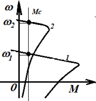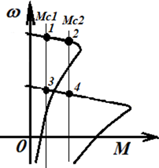 Если при моменте сопротивления на валу асинхронного электродвигателя Мс2 уменьшить частоту питающего напряжения, то скорость вращения привода будет меняться