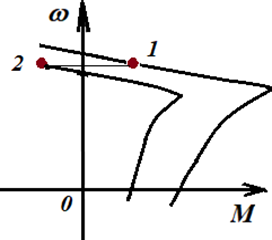 Если в момент коммутации электродвигатель мгновенно перешел из точки 1 механической характеристики в точку 2, то произошло