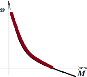 Выделенный участок механической характеристики электродвигателя постоянного тока последовательного возбуждения соответствует его работе в режиме