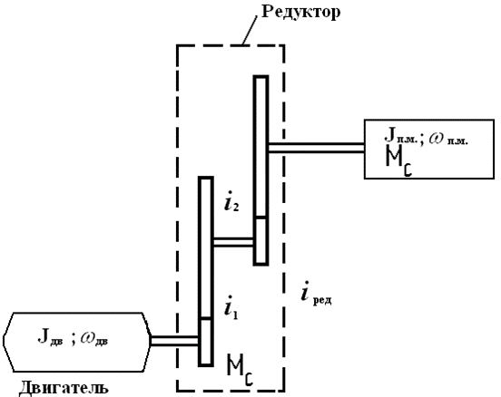 1. Привести механические характеристики (момент инерции J, момент сопротивления Мс.м.) к валу двигателя.