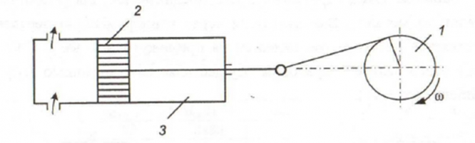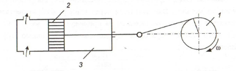 1 — кривошипный вал; 2 — поршень; 3 — цилиндр