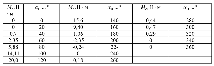 Таблица 2.2 – Зависимость сопротивления от угла поворота кривошипа