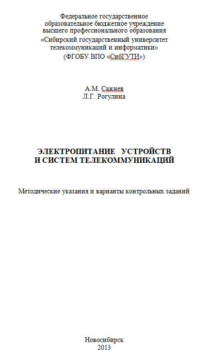 Для студентов НГТУ по предмету Электропитание устройств и систем телекоммуникаций (ЭУиСТ)А.М. Сажнев - Электропитание устройств и систем телекоммуникаций - Методические указания и варианты контрольных заданийА.М. Сажнев - Электропитание устройств и систем телекоммуникаций - Методические указания и варианты контрольных заданий 2022-10-05СтудИзба