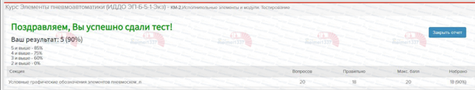 Курс Элементы пневмоавтоматики - КМ-2. Исполнительные элементы и модули. Тестирование - 90%