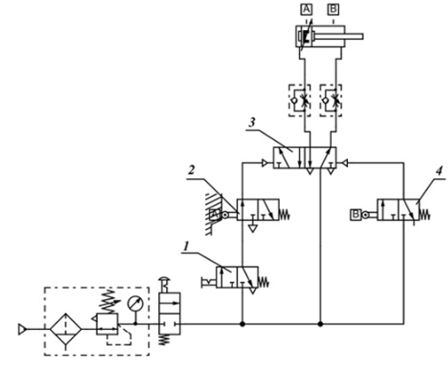 На рисунке приведена часть принципиальной пневматической схемы. Она отражает