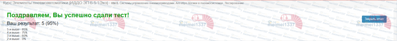 Ответы к заданиям КМ-5: Элементы пневмоавтоматики - КМ-5. Системы управления пневмоприводами. Алгебра логики в пневмосистемах. Тестирование