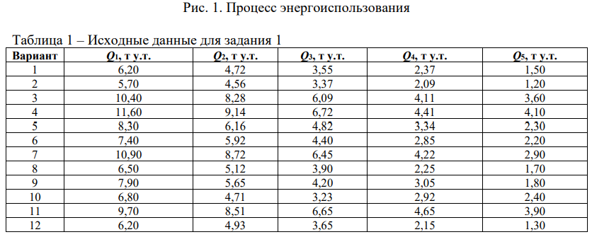 энергоиспользования в % (рис. 1). Округление – два знака после запятой. Исходные данные
