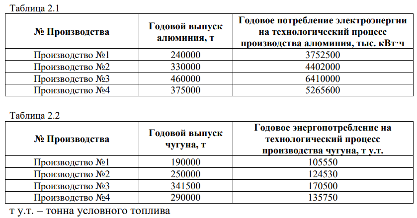4.1. Определите энергоемкость производства алюминия (тыс. кВт·ч/т) для каждого из