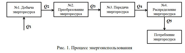 1) Произведите оценку эффективности каждого из процессов (ηд, ηо, ηк, ηс) и интегральную эффективность совокупности всех процессов (ηи) изображенной цепочки энергоиспользования в% (рис. 1). Округление – два знака после запятой. Исходные данные представлены в таблице 1.