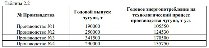2.2) Определите энергоемкость производства чугуна (т у.т./т) для каждого из производств (NoNo1-4)