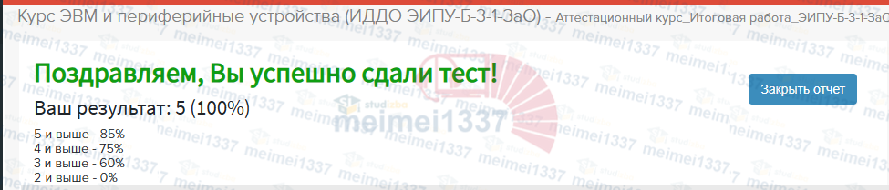 💼 База ответов к тесту Аттестационный курс Итоговая работа (Курс ЭВМ и периферийные устройства) 📊