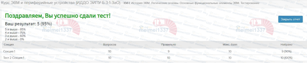 Для студентов ИДДО НИУ «МЭИ» по предмету ЭВМ и периферийные устройства (ЭВМиПУ)КМ-1. История ЭВМ. Логические основы. Основные функциональные элементы ЭВМ. Тестирование - 95%КМ-1. История ЭВМ. Логические основы. Основные функциональные элементы ЭВМ. Тестирование - 95%