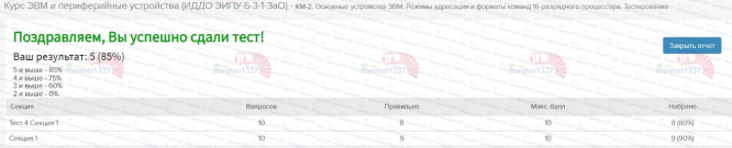 Ответы к заданиям КМ-2: КМ-2. Основные устройства ЭВМ. Режимы адресации и форматы команд 16-разрядного процессора. Тестирование - 85%