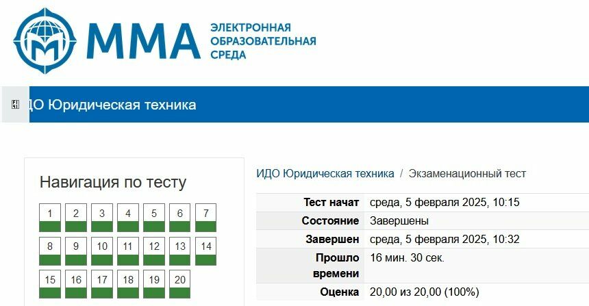 Сборник ответов к экзаменационному тесту Юридическая техника ММА.