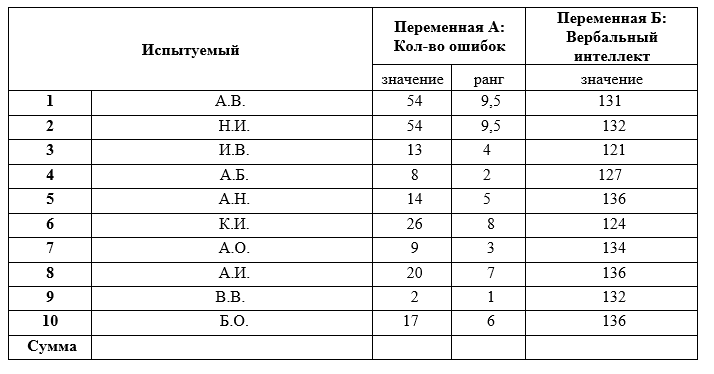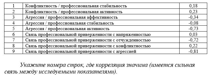 В таблице ниже даны итоговые данные после вычисления коэффициентов корреляции.
