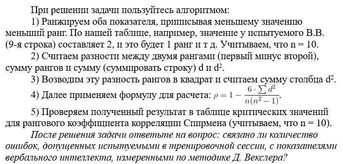Расположите в правильном порядке этапы расчета коэффициента ранговой корреляции Спирмена: