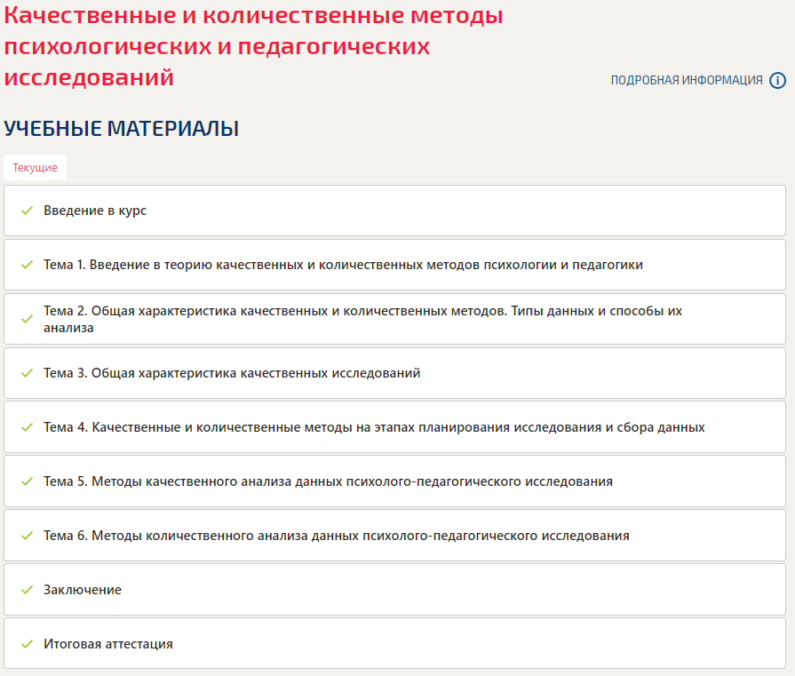 Качественные и количественные методы психологических и педагогических исследований (Темы 1-6, итоговый тест, компетентностный)