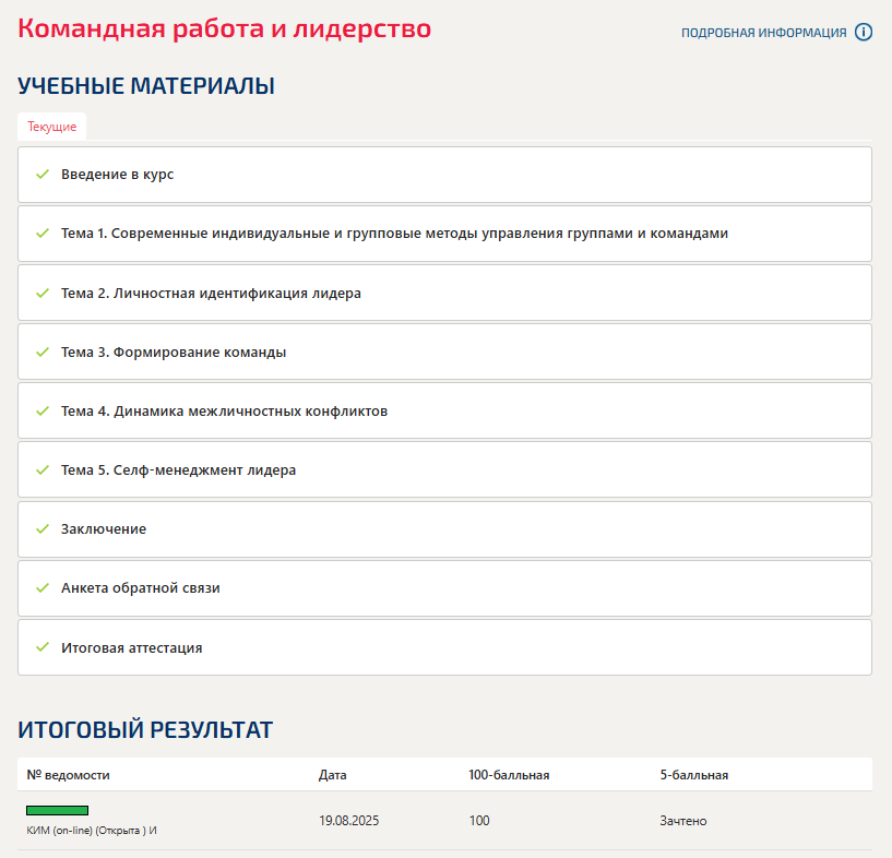 Ответы к зачёту Тесты 1-5, Итоговый: Командная работа и лидерство (Темы 1-5) вариант Компетентностный