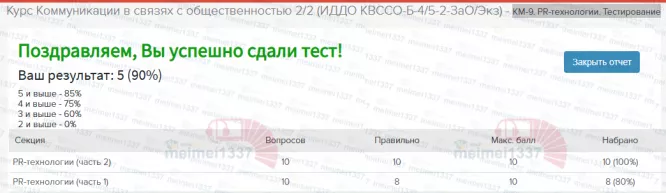 💼 База ответов к тесту КМ-9. PR-технологии (Курс Коммуникации в связях с общественностью) 📊
