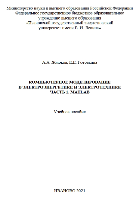 Для студентов ИГЭУ им. Ленина по предмету Компьютерное моделированиеА.А. Яблоков, Е.Е. Готовкина - Компьютерное моделирование в электроэнергетике и электротехнике. Часть 1. MATLABА.А. Яблоков, Е.Е. Готовкина - Компьютерное моделирование в электроэнергетике и электротехнике. Часть 1. MATLAB 2025-04-02СтудИзба