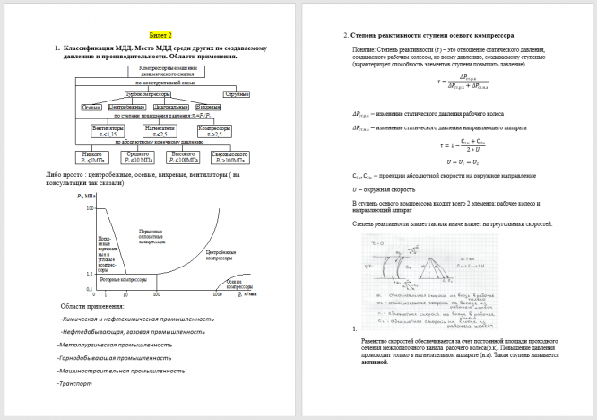 ПОЛНЫЕ ОТВЕТЫ НА ЭКЗАМЕНАЦИОННЫЕ БИЛЕТЫ ПО КУРСУ "КОМПРЕССОРНЫЕ МАШИНЫ ДИНАМИЧЕСКОГО ДЕЙСТВИЯ" (14 БИЛЕТОВ)
