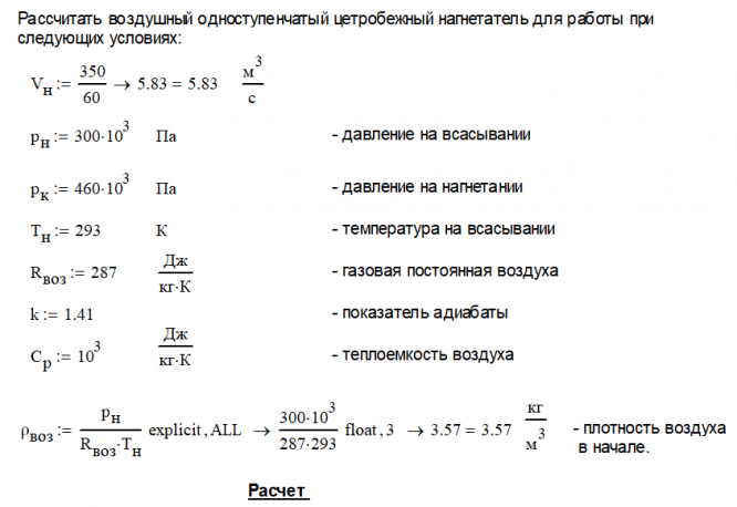 ДЗ: Домашнее задание - Рассчитать воздушный одноступенчатый цетробежный нагнетатель (MathCAD)