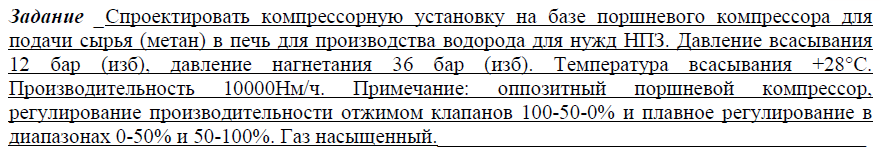 Проектирование компрессорной установки на базе поршневого компрессора для подачи сырья (метан) в печь для производства водорода для нужд НПЗ