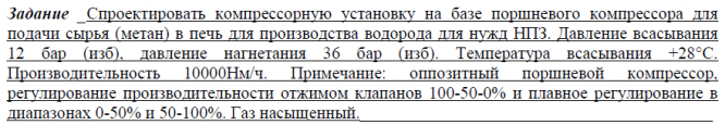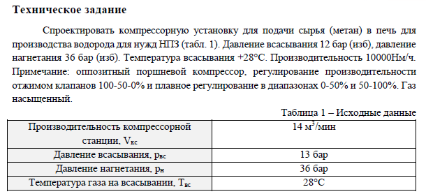 Главная » Учебные материалы » Компрессорные станции и установки » Домашние задания » МГТУ им. Н.Э.Баумана » 11 семестр (3 семестр магистратуры) » Проектирование компрессорной установки на базе поршневого компрессора для подачи сырья (метан) в печь для производства водорода для нужд НПЗ