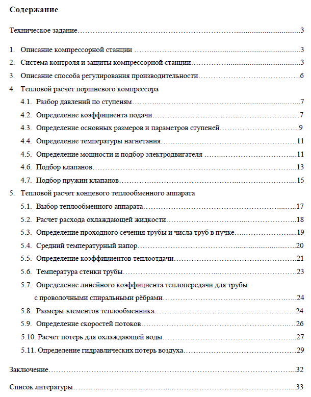 Проектирование компрессорной установки на базе поршневого компрессора для подачи сырья в печь
