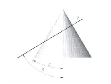 По какой линии фронтально-проецирующая плоскость y пересекает коническую поверхность, если угол B больше угла a ![]()