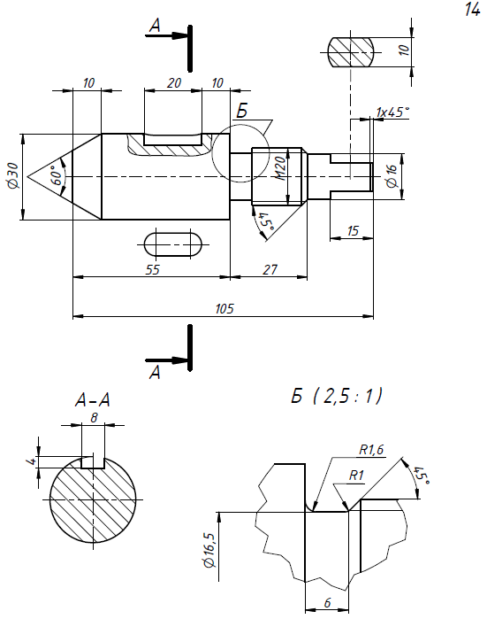 Лабораторная работа: Autodesk Inventor. Лабораторные работы. Детали. (Базовый курс) вариант 14