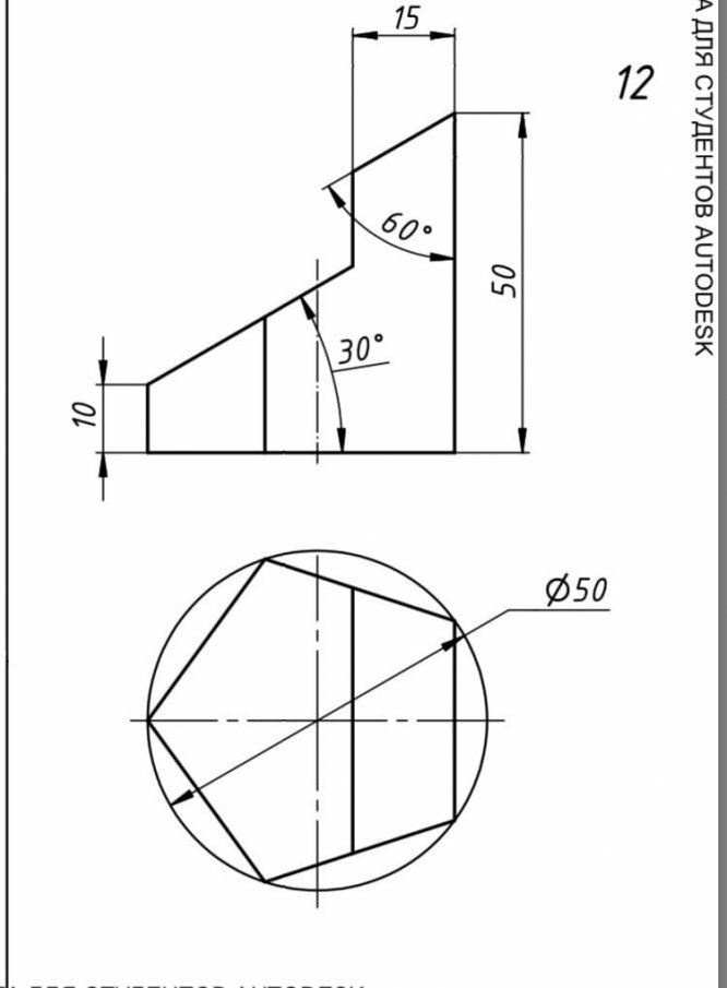 Лабораторная работа: Autodesk Inventor. Лабораторные работы. Детали. (Базовый курс) вариант 12
