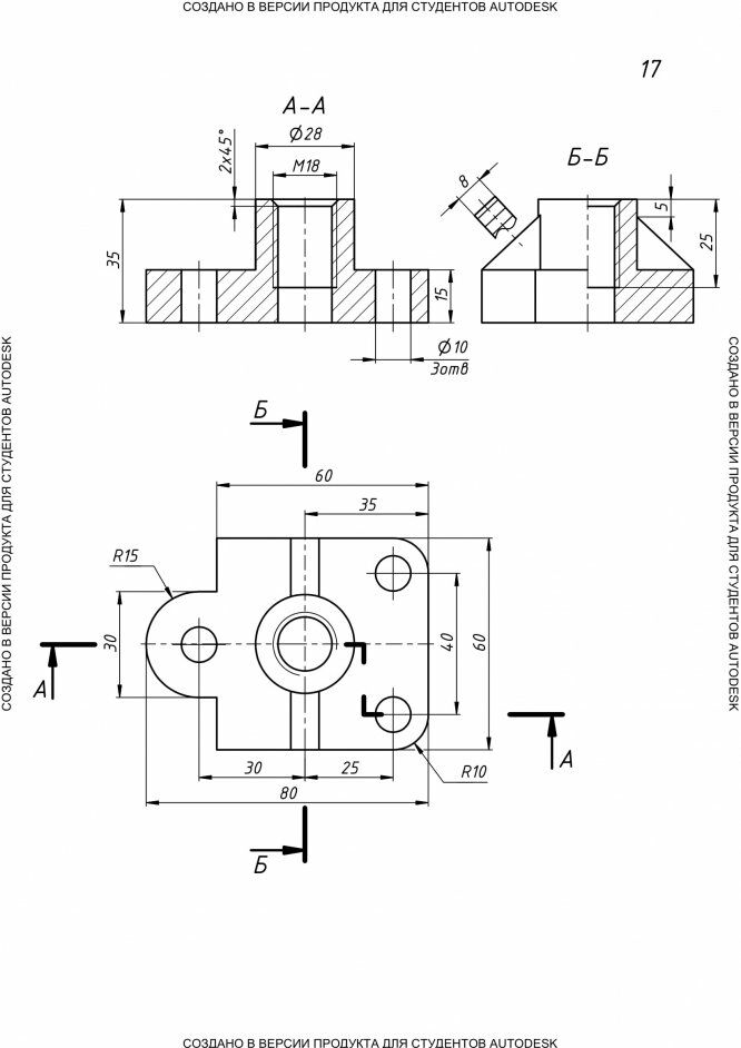 Лабораторная работа: Autodesk Inventor. Лабораторные работы. Детали. (Базовый курс) вариант 17