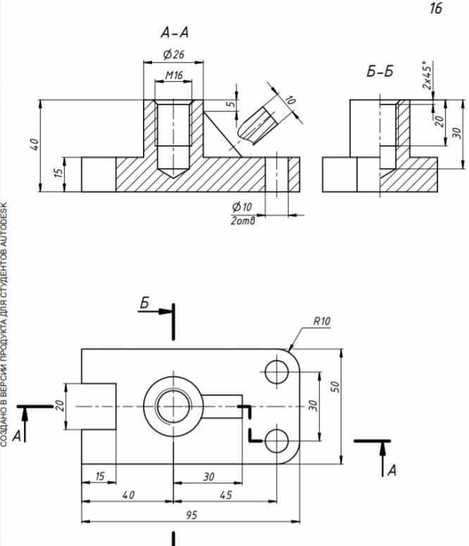 Лабораторная работа: Autodesk Inventor. Лабораторные работы. Детали. (Базовый курс) вариант 16
