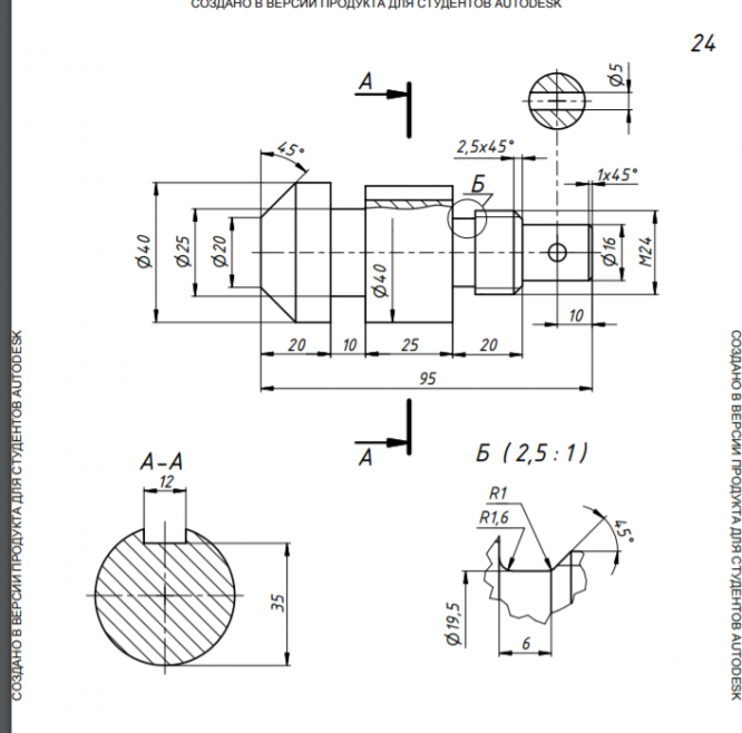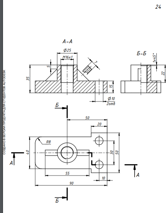 Лабораторная работа: Autodesk Inventor. Лабораторные работы. Детали. (Базовый курс) вариант 24