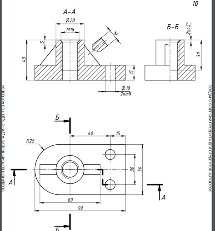 Лабораторная работа: Autodesk Inventor. Лабораторные работы. Детали. (Базовый курс) вариант 10