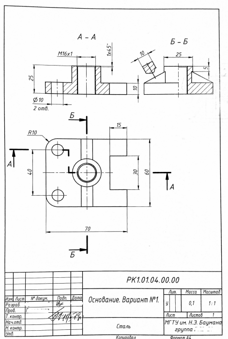 Лабораторная работа: Autodesk Inventor. Лабораторные работы. Детали. (Базовый курс) вариант 1