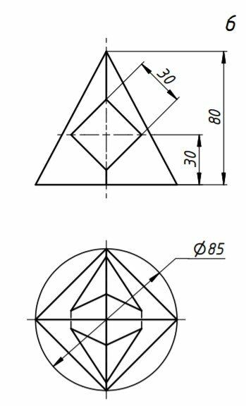 В файле комплект ЛР для 6 варианта , включающий для каждого задания чертеж и модель фигуры(призма пирамида шар основание вал). ЛР приняты преподавателем. Сделано в инвенторе 21 года!. Условие ниже