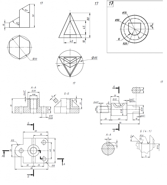 В архиве - комплект задач (5 задач - призма, пирамида, шар со сквозным отверстием, основание и вал) к лабораторным работам по инженерной и компьютерной графике за 2 семестр (Autodesk Inventor). К каждой задаче сделана модель детали, файл чертежа и сам чертеж в формате pdf. Все выполнено в программе Autodesk Inventor версии 2017.