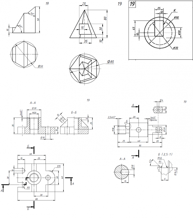 В архиве - комплект задач (5 задач - призма, пирамида, шар со сквозным отверстием, основание и вал) к лабораторным работам по инженерной и компьютерной графике за 2 семестр (Autodesk Inventor). К каждой задаче сделана модель детали, файл чертежа и сам чертеж в формате pdf. Все выполнено в программе Autodesk Inventor версии 2017.