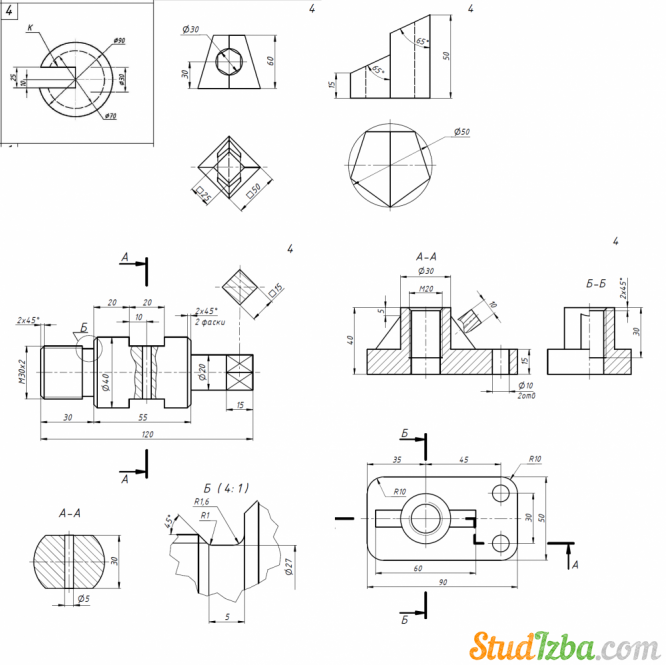 К каждой задаче сделан 3D модель детали и чертеж в формате pdf. Все выполнено в программе Autodesk Inventor
